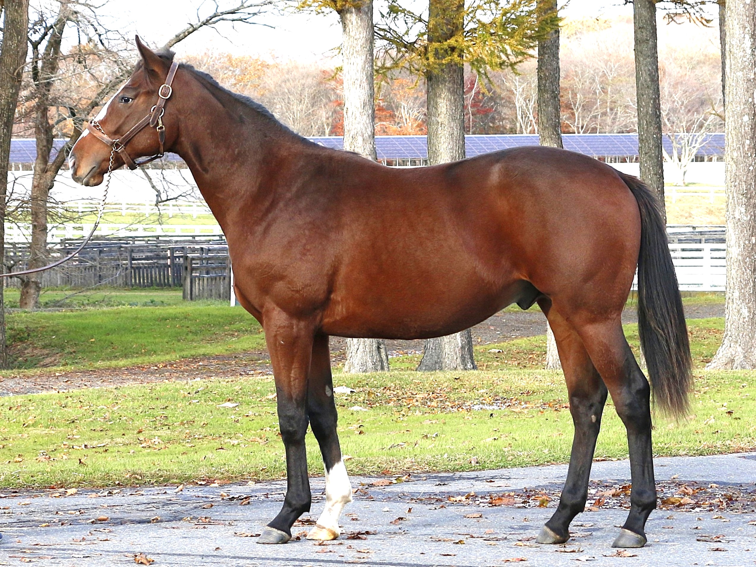 場長は「10月26日にブルースターズファームから真歌へ移動してブレーキングを開始しています。馬体重も増えて成長を感じます。まだハミや鞍付け程度ですが、週明けにはドライビングまで進める予定です」とコメントしています。