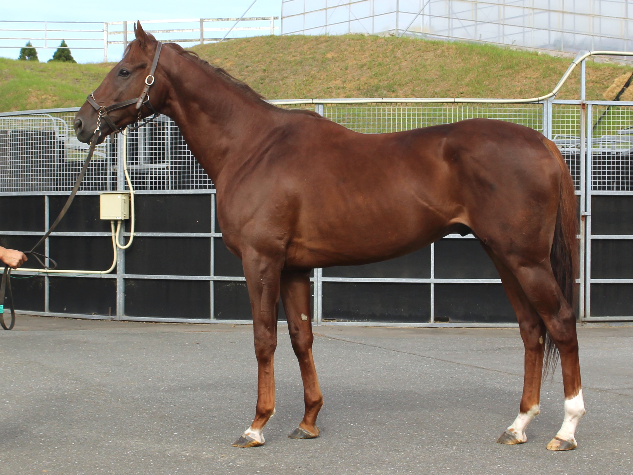 場長は「人を乗せて走ることを覚えてきました。順調に坂路コースでの調教を進めています。馬格の通りパワーを感じる走りを見せています。並行して行っているゲート練習では、既に電動で扉を開ける動きや音などに馴らしております。2か月間ブレーキングから乗り込んできたこともあり、一度リフレッシュ放牧に切り替える予定です。」とコメントしています。