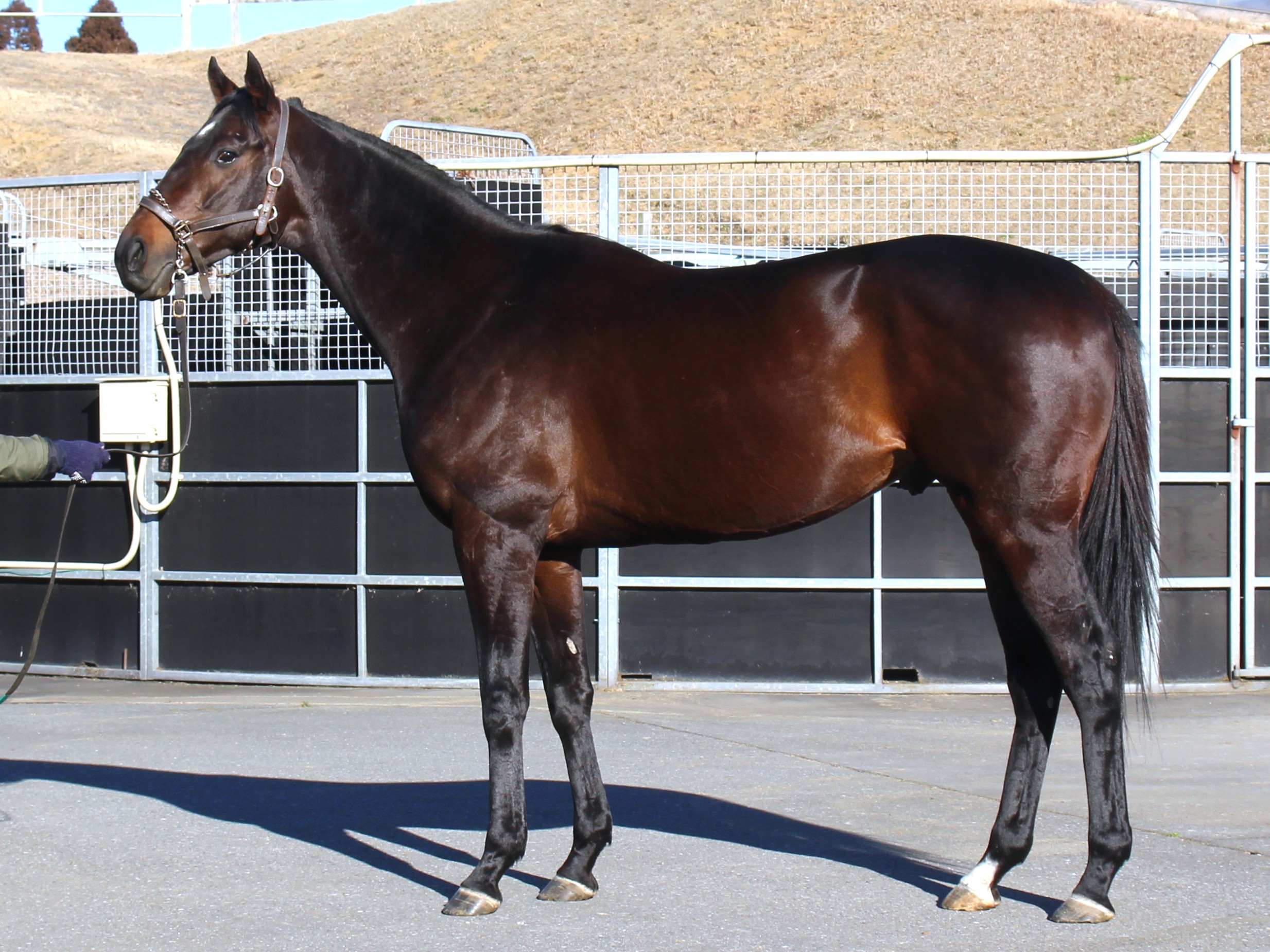場長は「早々にブレーキングを終えて、坂路コースでの騎乗調教後は夕方まで青草放牧しています。ディープインパクト系の種牡馬の産駒らしく、バネのありそうな乗り心地の良い背中をしているようです。既にキャンターもスムーズに出すことが出来ており、このまま基礎体力つくりに向けて乗り込んでいきます。」とコメントしています。