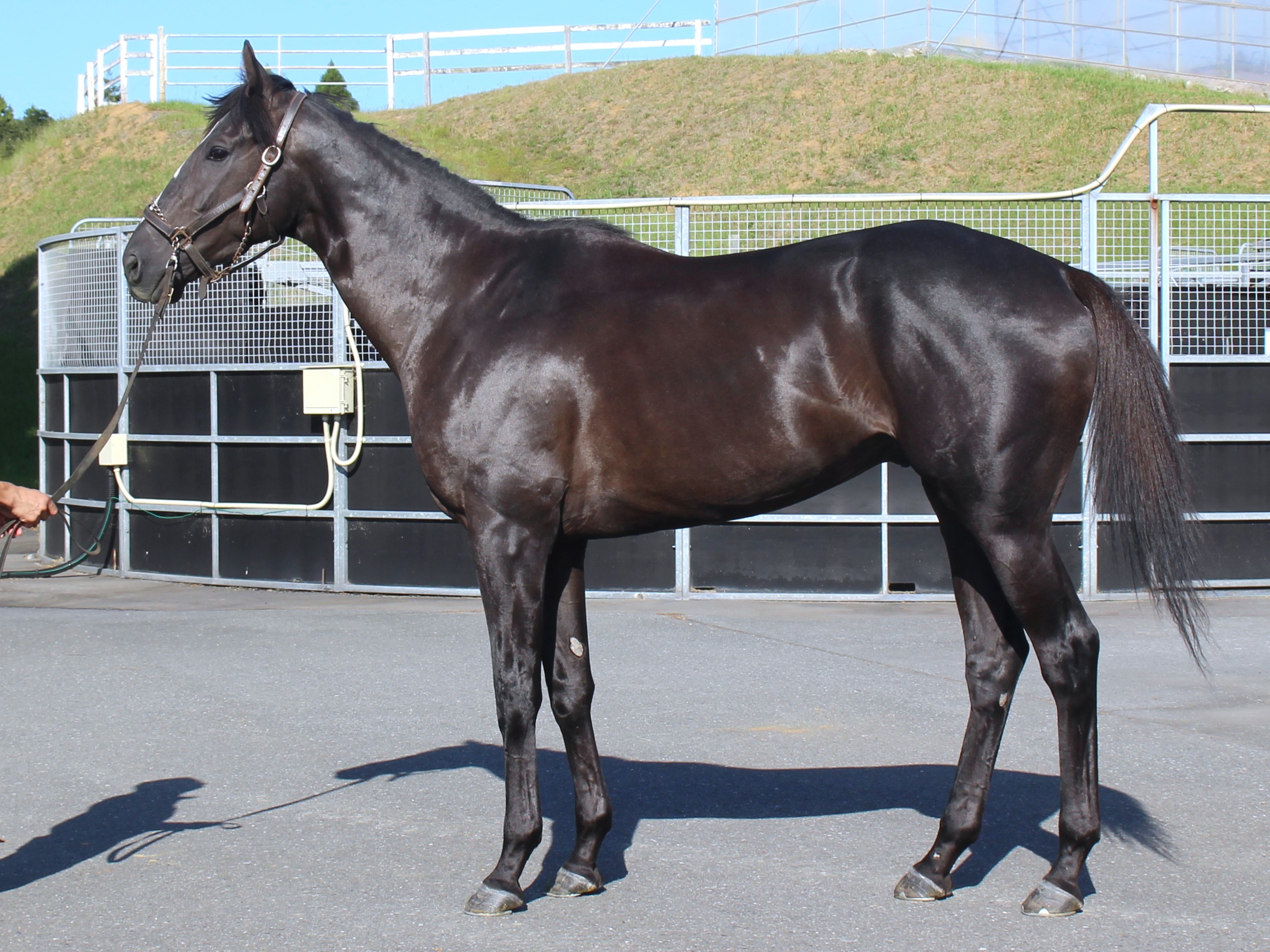 場長は「既にブレーキングを終えて騎乗調教に入ったところですが、9月8日に左前肢を挫石してしまいました。近い内に坂路コースのスクーリングを予定していましたが、痛みが抜けるまでは厩舎付近のウォーキング程度に留めて様子を見ていきます。臆病な性格ですが、理解が早く納得も早い様です。俊敏な動きで運動神経の良さを感じますし、坂路コースを駆け上がるのが楽しみです。引き続き育成を進めていきます。」とコメントしています。