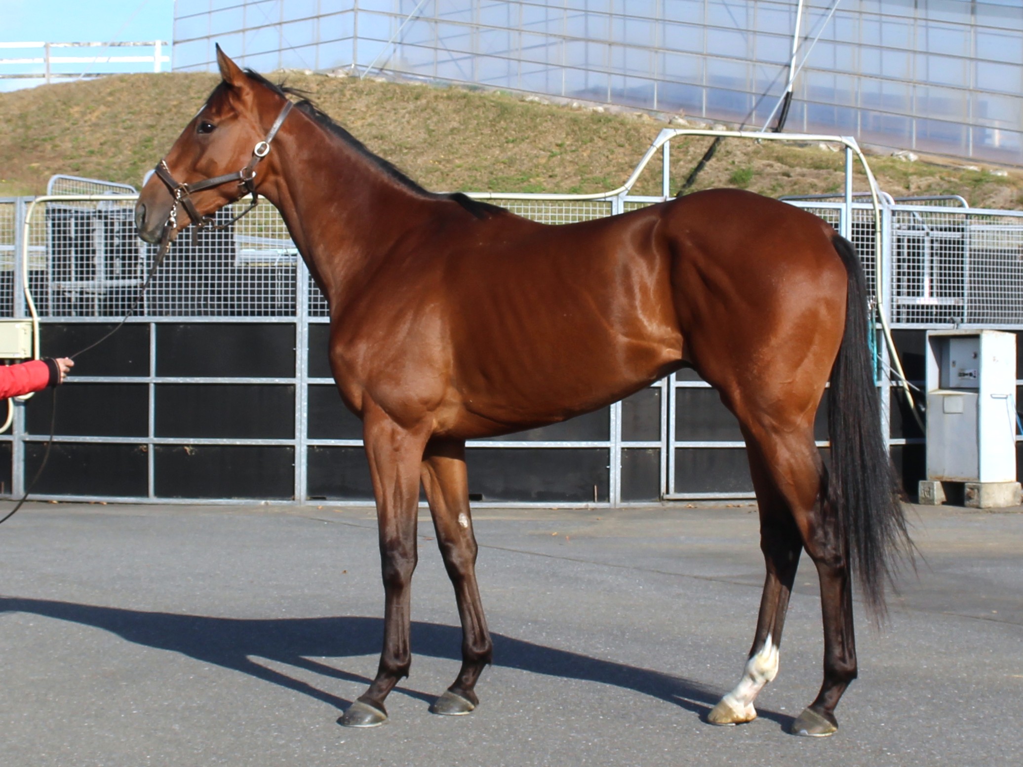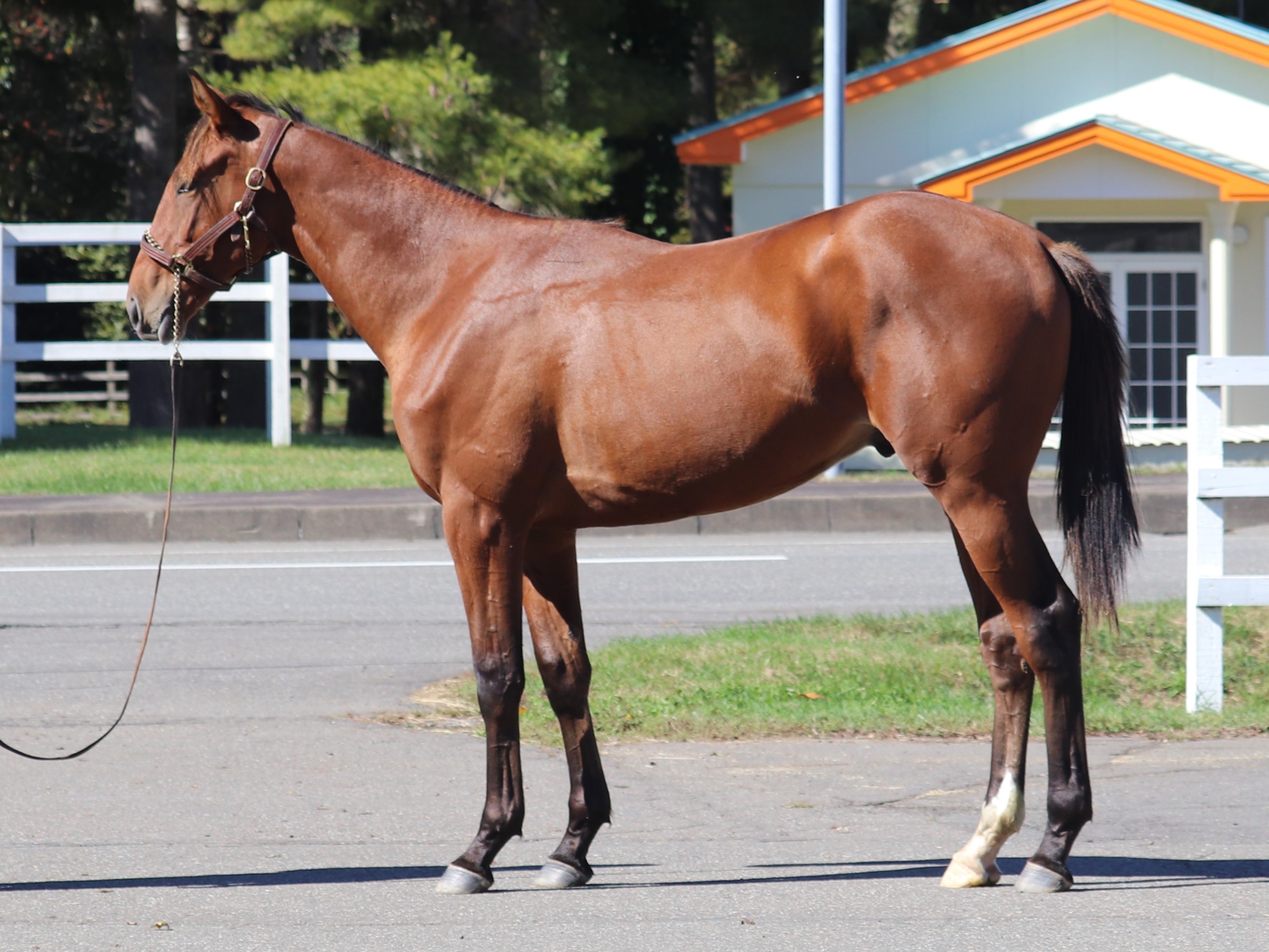 主任は「ブレーキングでは敏感な面を見せていましたが、徐々に慣れて坂路での騎乗調教まで進めてきました。馬格があって大きなフットワークで走ります。先頭でも馬の後ろでも落ち着いて走ることが出来ています。ゲートへの進入やトレッドミルでのキャンターなども一通り経験させたことから、10月8日より騎乗を控えて気分転換させています。」とコメントしています。