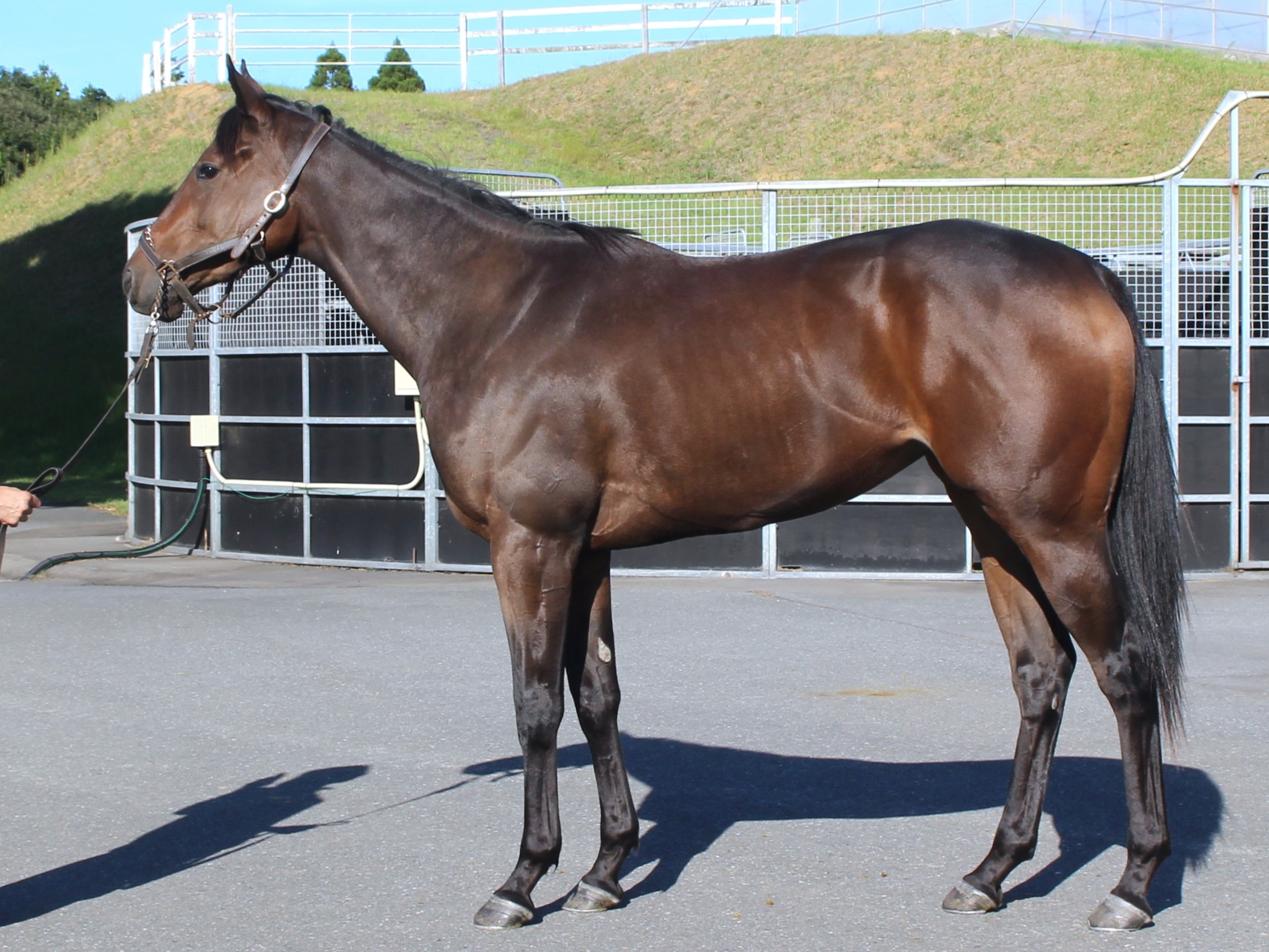 場長は「初仔ということで小柄な部類かもしれませんが、比較的馬体には幅があり筋肉の量は十分ではないでしょうか。日頃の様子からは柔軟さを感じる。量だけではなく質も兼ね備えた良駒の印象です。学習能力があって物覚えが早く、落ち着いた性格でもありスムーズにブレーキングを進めていけると思います。」とコメントしています。