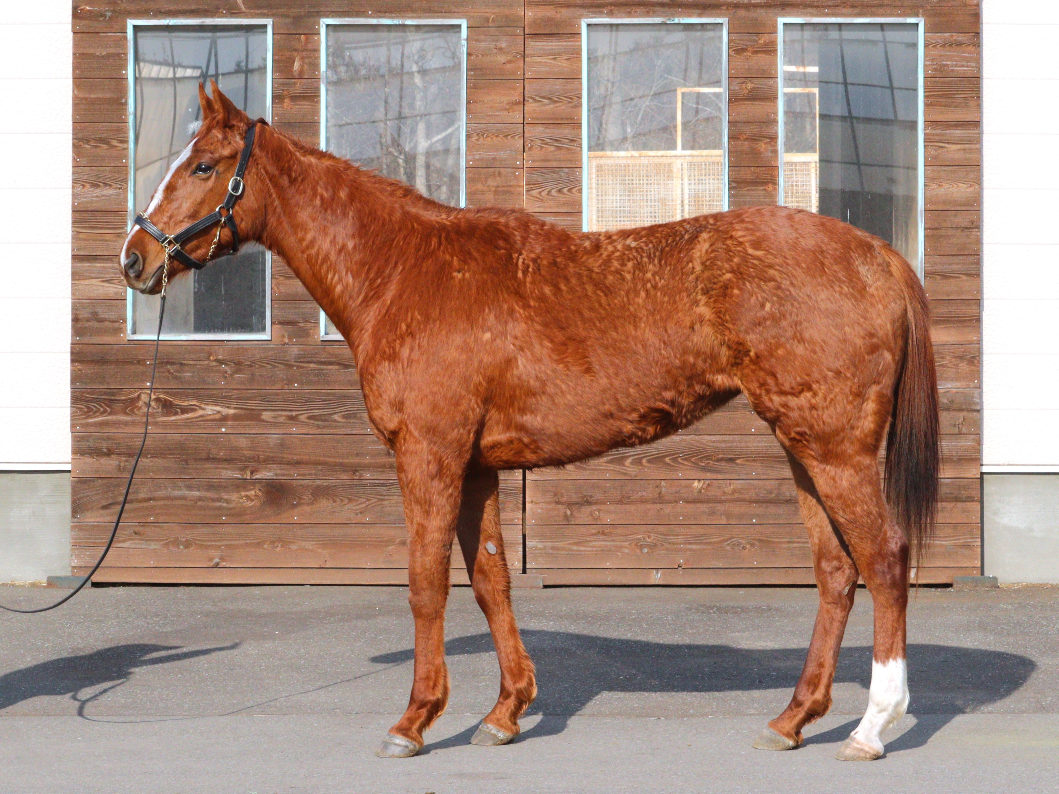 場長は「我が強く納得するまでに時間がかかるタイプでしたが、ブレーキングを終えて坂路コースで騎乗調教を進めています。まだハッキング程度のスピードながら、安定感のある走りには一息です。走り方を覚えるまで少し時間がかかりそうな印象ですが、このまま乗り進めていきます。」とコメントしています。
