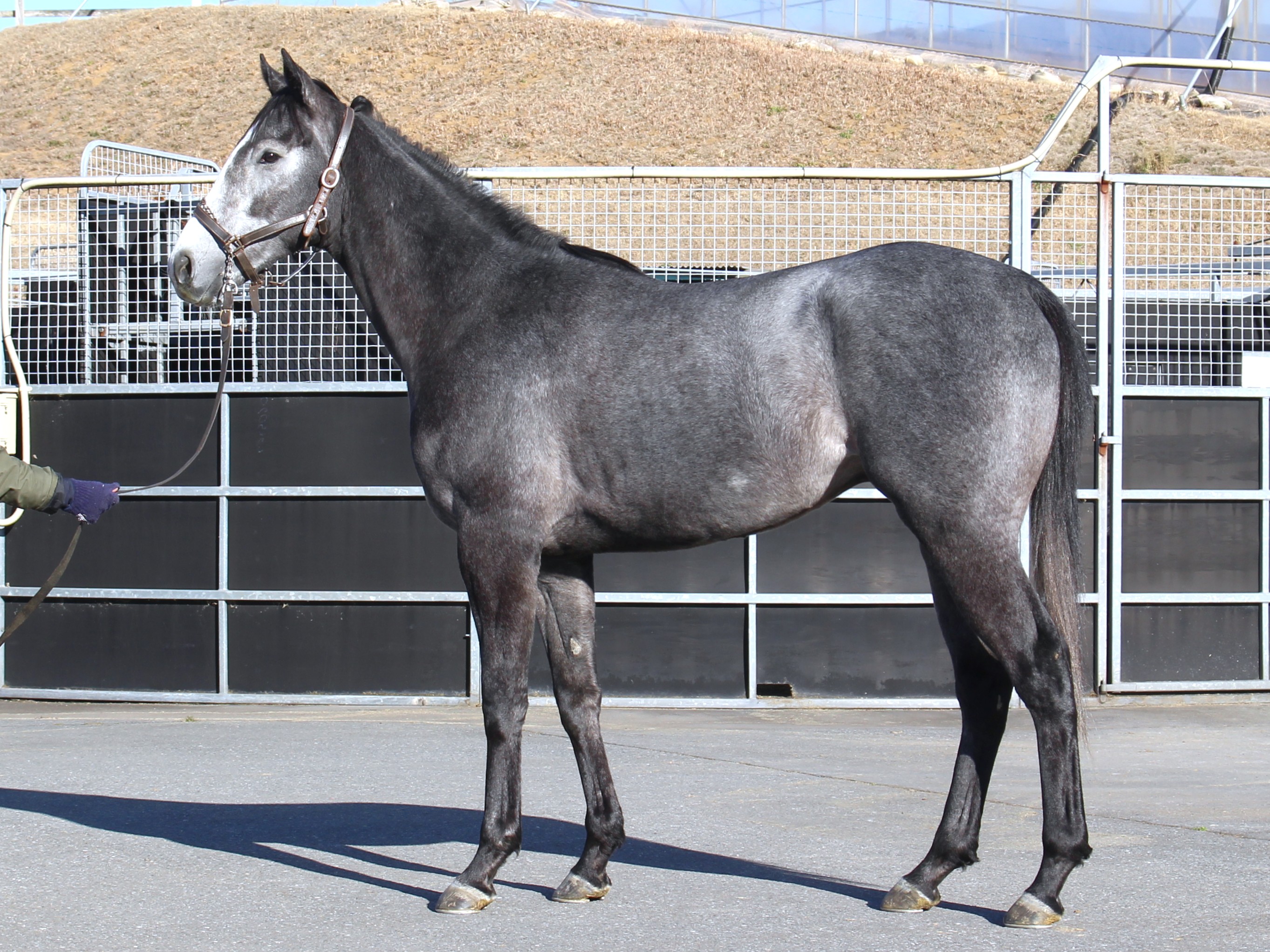 主任は「ブレーキングを終えた後、10月3日より坂路コースでの騎乗調教を開始しました。おとなしい性格で坂路コースでの騎乗調教へ順調に進みました。遅生まれではありますが馬体もしっかりしており早生まれの馬たちと遜色なく動けています。また、ゲート練習も並行して実施しており、進入についても問題なくクリアしています。さらにトレッドミルではキャンターも覚えここまでの予定のメニューは順調に進められています。一通り終えたことから10月30日には騎乗を控えて、現在は気分転換を兼ねて騎乗調教を控えています。」とコメントしています。