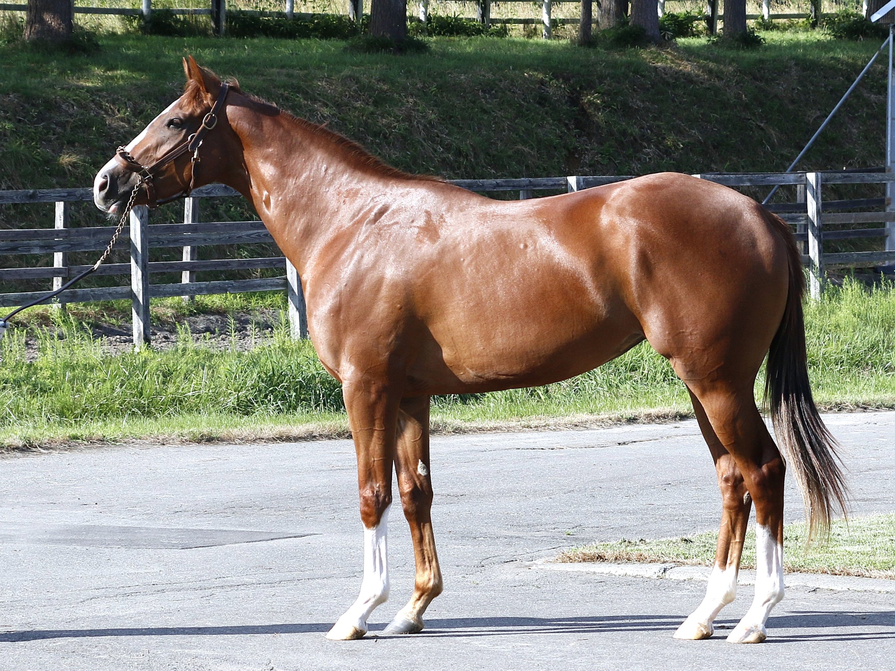場長は「引き続き坂路コースで乗り込んでいますが、少し運動量を落として調教後は放牧地へ放していることもあって、馬体がふっくらとしました。送り出しは少し先になる見込みなので、まずは馬体を絞っていくことから始め、徐々に運動量を増やしていく予定です」とコメントしています。