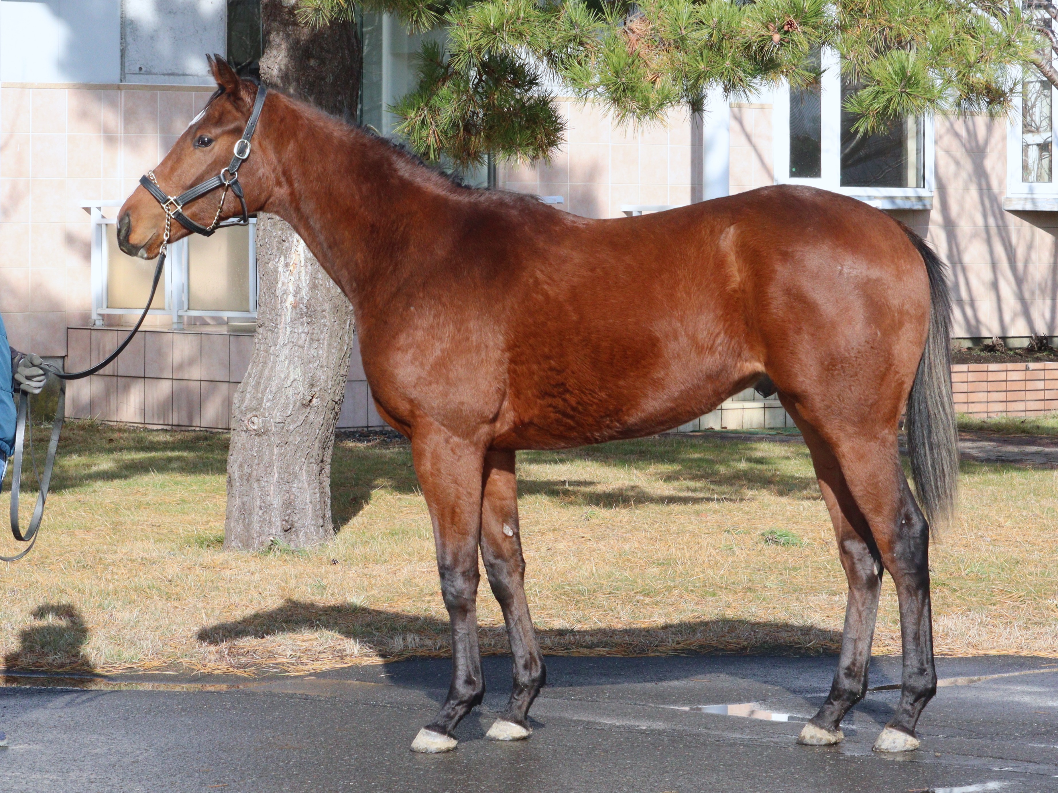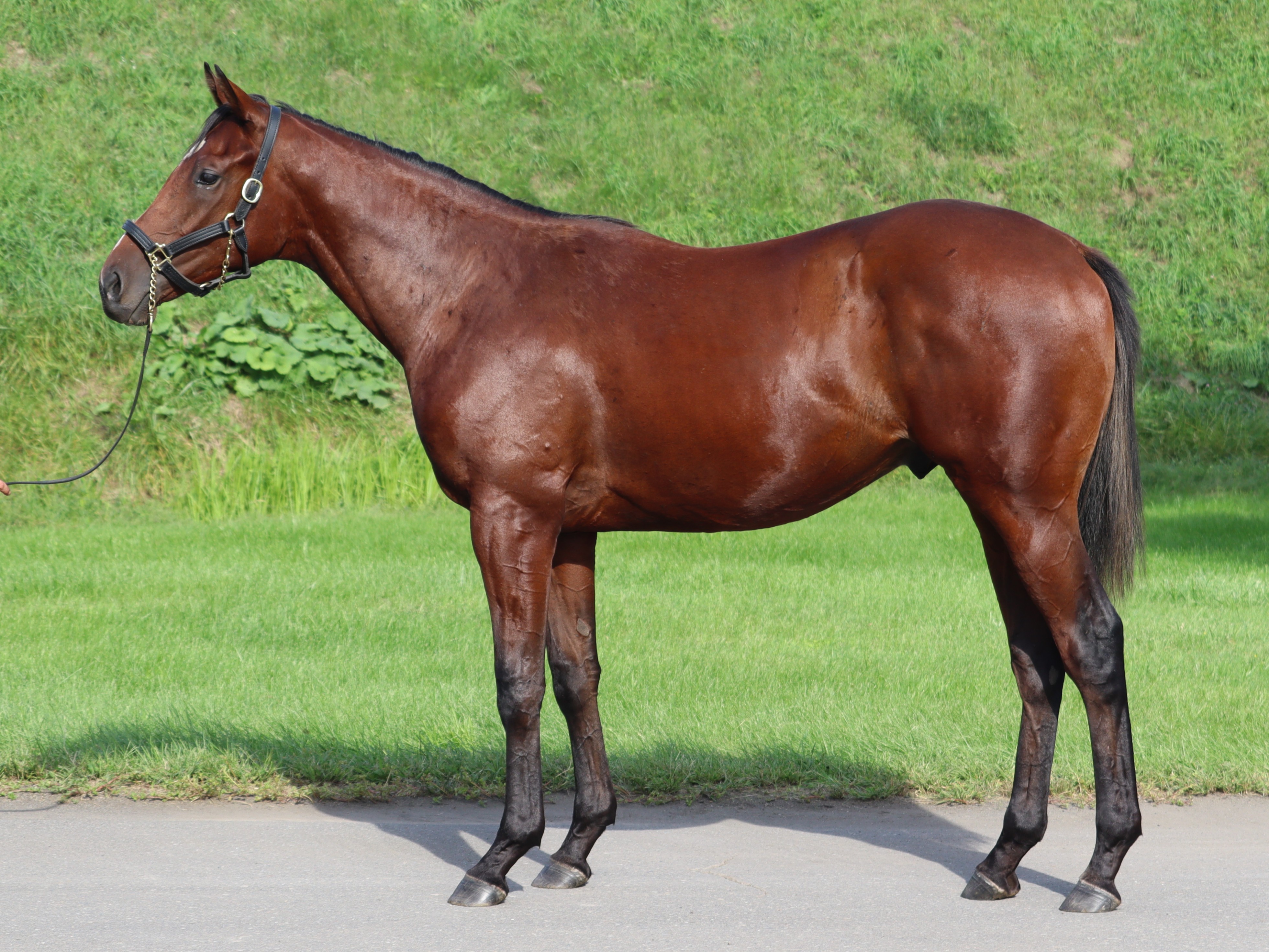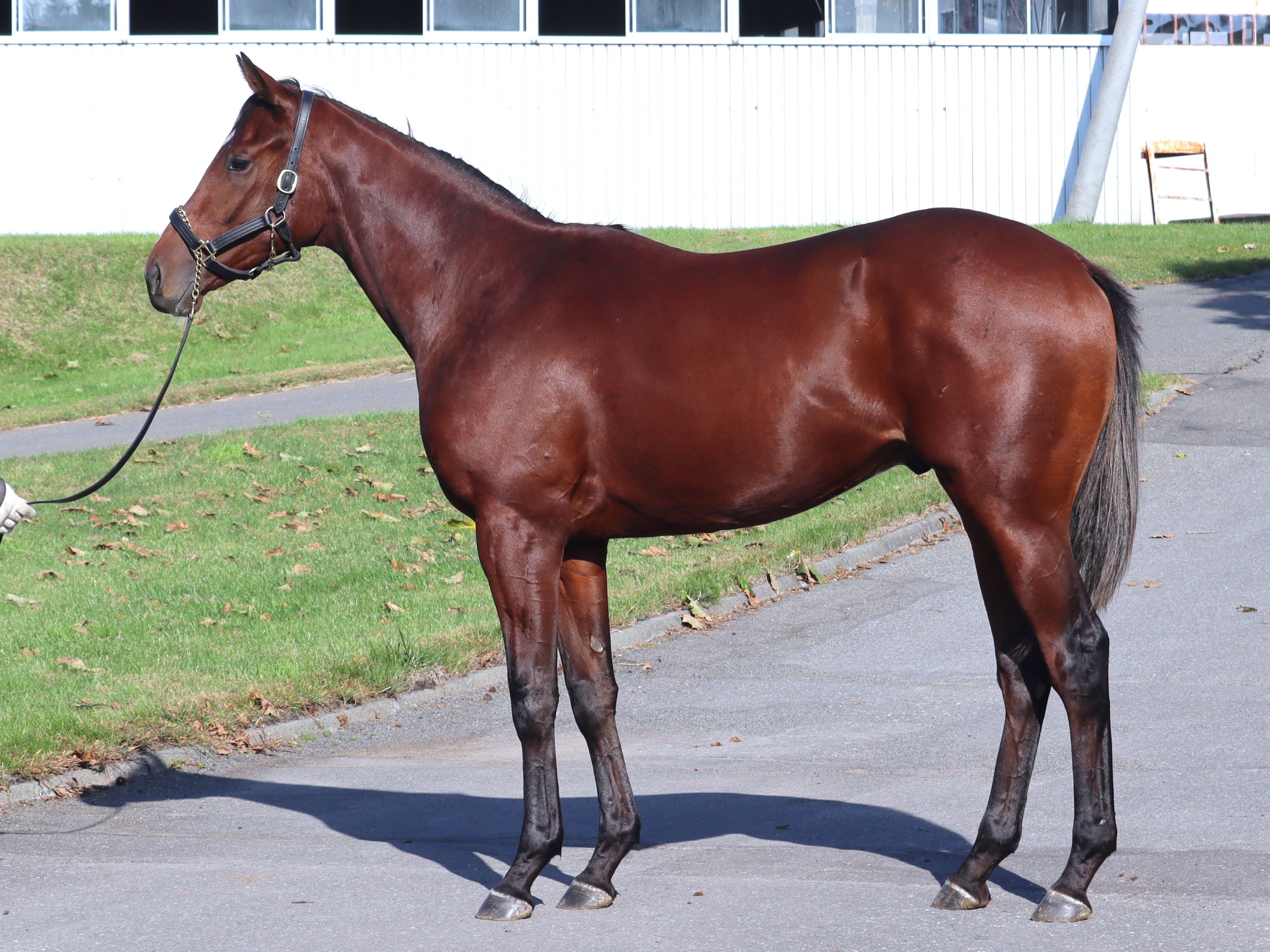 場長は「臆病な性格ながら物覚えは早く、既に坂路コースに出ています。まだ人を乗せて走ることを覚える段階ですが、急坂を苦にせず一歩一歩力強く駆け上がっていますし、馬体が上向かず前に推進する走りはスピードを感じます。パワーもスピードもある競走馬に育ってくれるのではないでしょうか」とコメントしています。