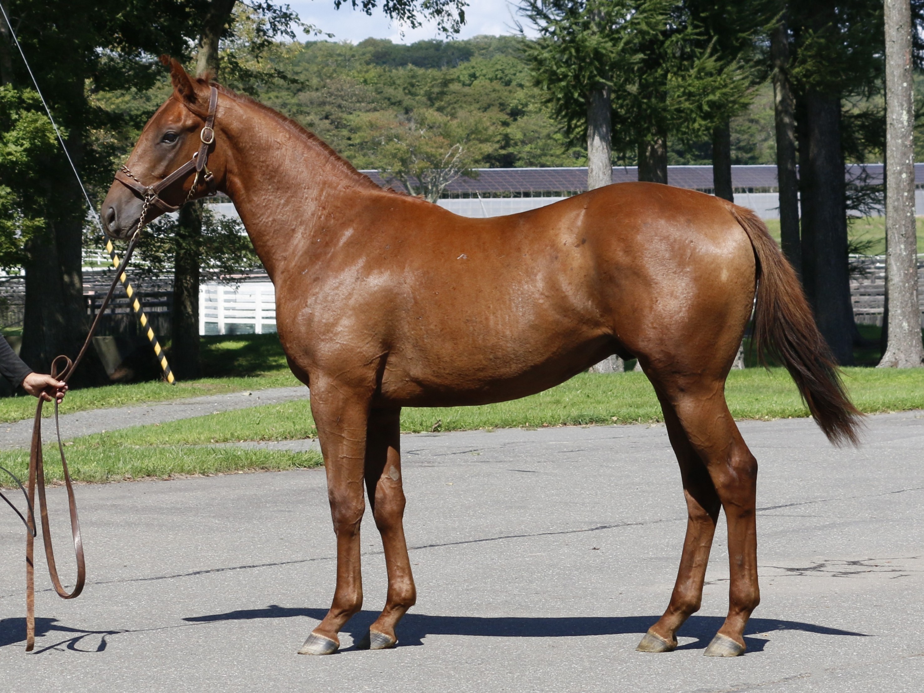 場長は「背中の幅があってバランスの取れた好馬体は目を惹きます。脚さばきも軽く放牧地では先頭を走っている姿をよく見ます。奇心旺盛で人が好きなところには愛嬌も感じます」とコメントしています。