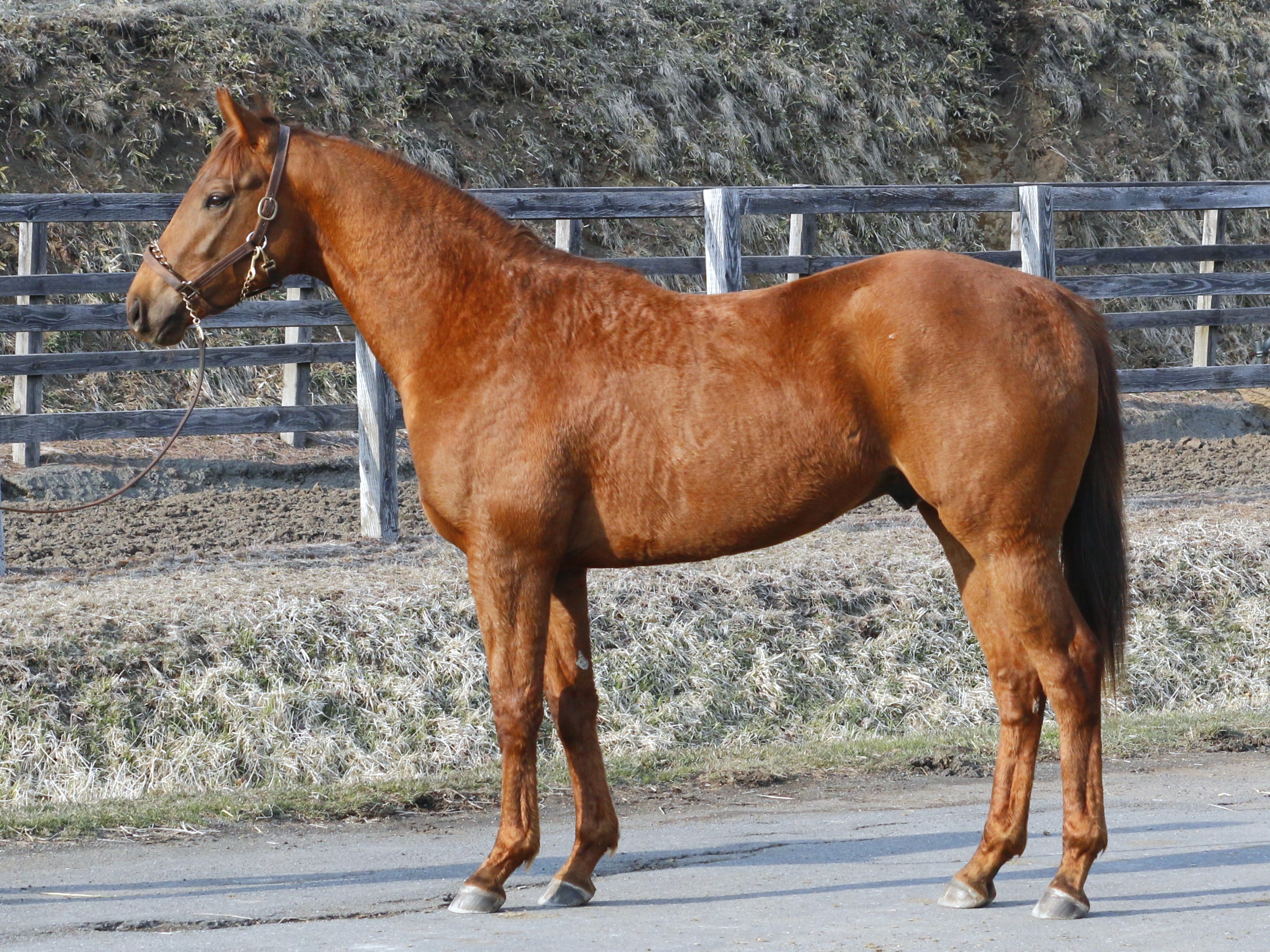 場長は「引き続きトレッドミルを併用しながら坂路コースで騎乗調教を進めています。走りに勢いがあり、タフな馬と感じます。坂路コースでも道中は気持ちがたかぶることもなく、ハミ受けも問題ありません。このまま進めていきます」とコメントしています。