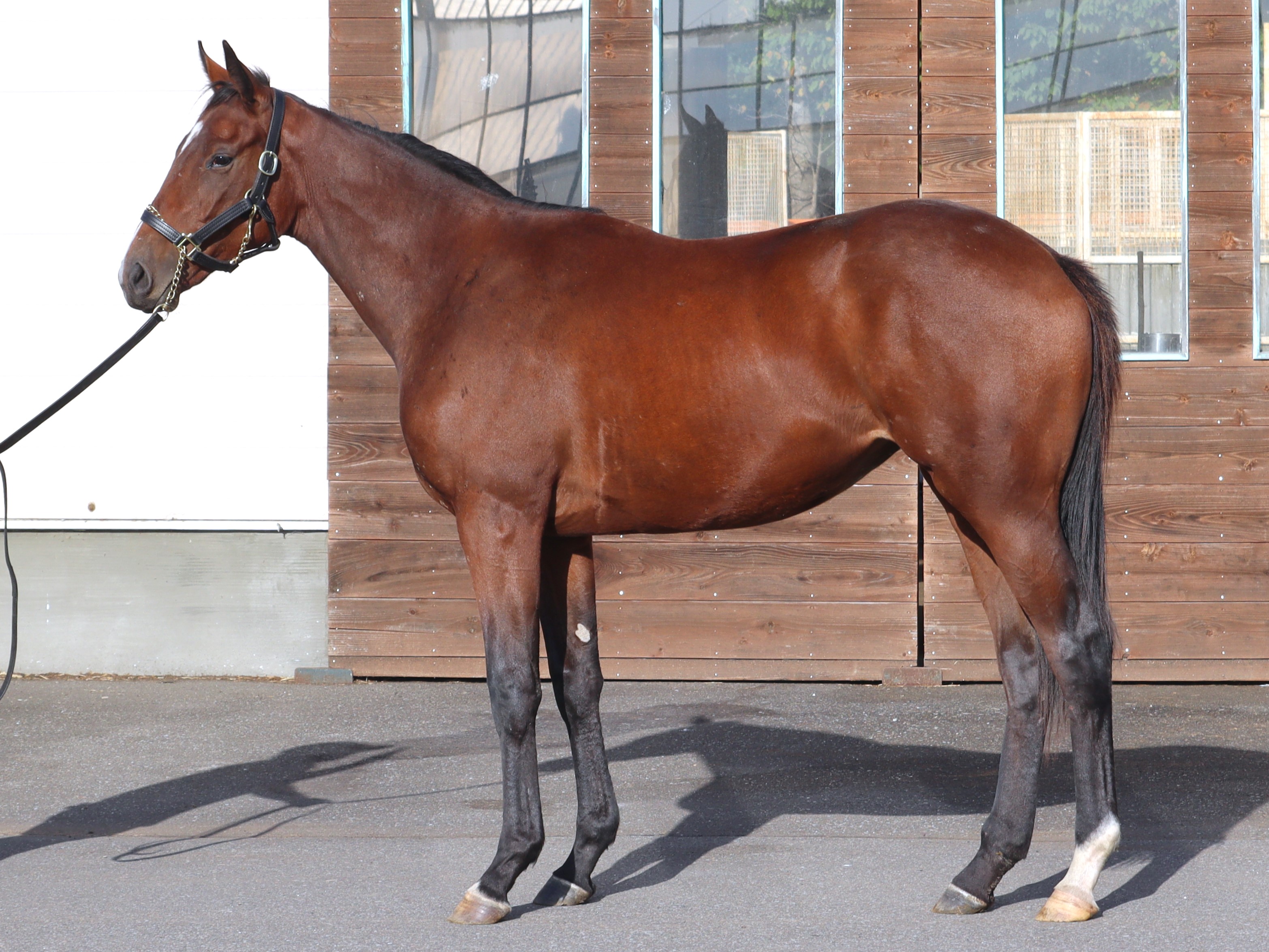 場長は「気の強さがあり、納得するまで馬具の装着に反抗心を見せていました。徐々に受け入れてくれるようになりましたが、この気の強さは競馬に向くのではないでしょうか。反抗して立ち上がるシーンでは後躯と体幹の強さを感じます。薄手の体型ながら、この中間は20?以上馬体重が増えました。今後の成長が楽しみです」とコメントしています。