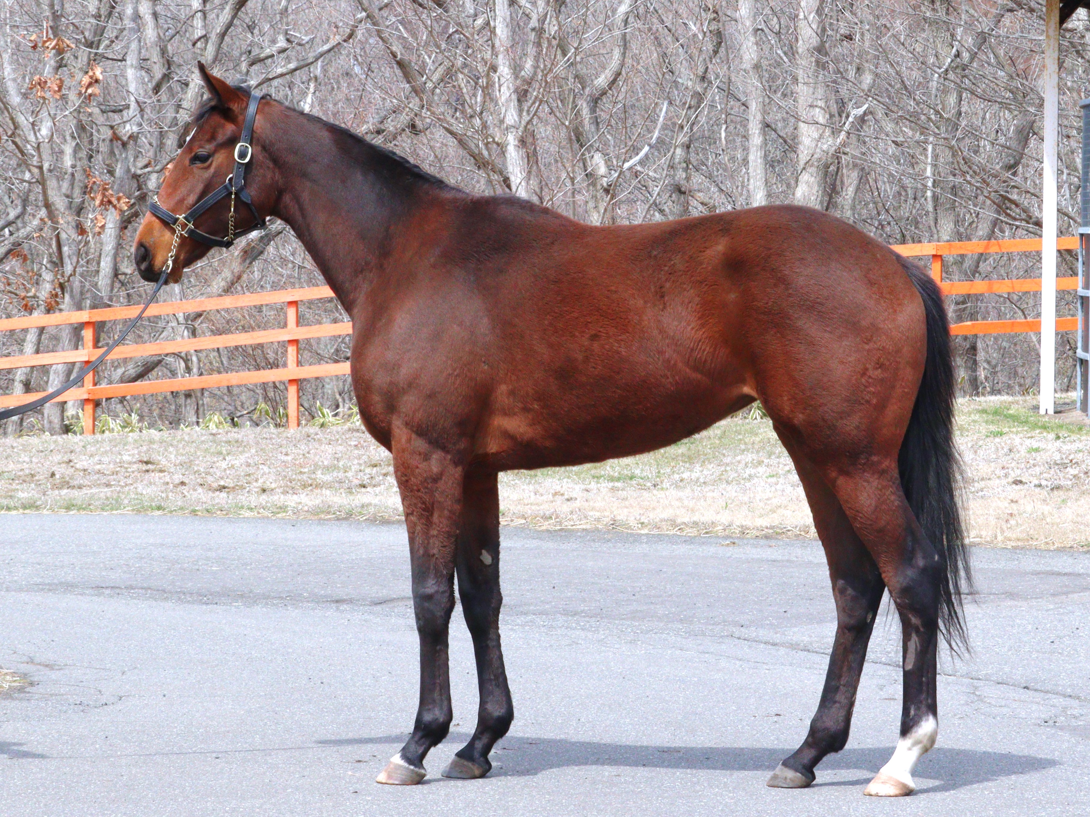 場長は「3月一杯は十分負荷をかけて乗り込んできました。小柄な馬体でも力強さを感じる動きを見せており、スクミの症状も見せていません。4月よりリフレッシュ放牧に切り替えています。坂路調教は控えるものの、週に数回はゲート練習を重ねていく予定です。リフレッシュ放牧明けの次のクールではデビュー時期なども検討していきます」とコメントしています。