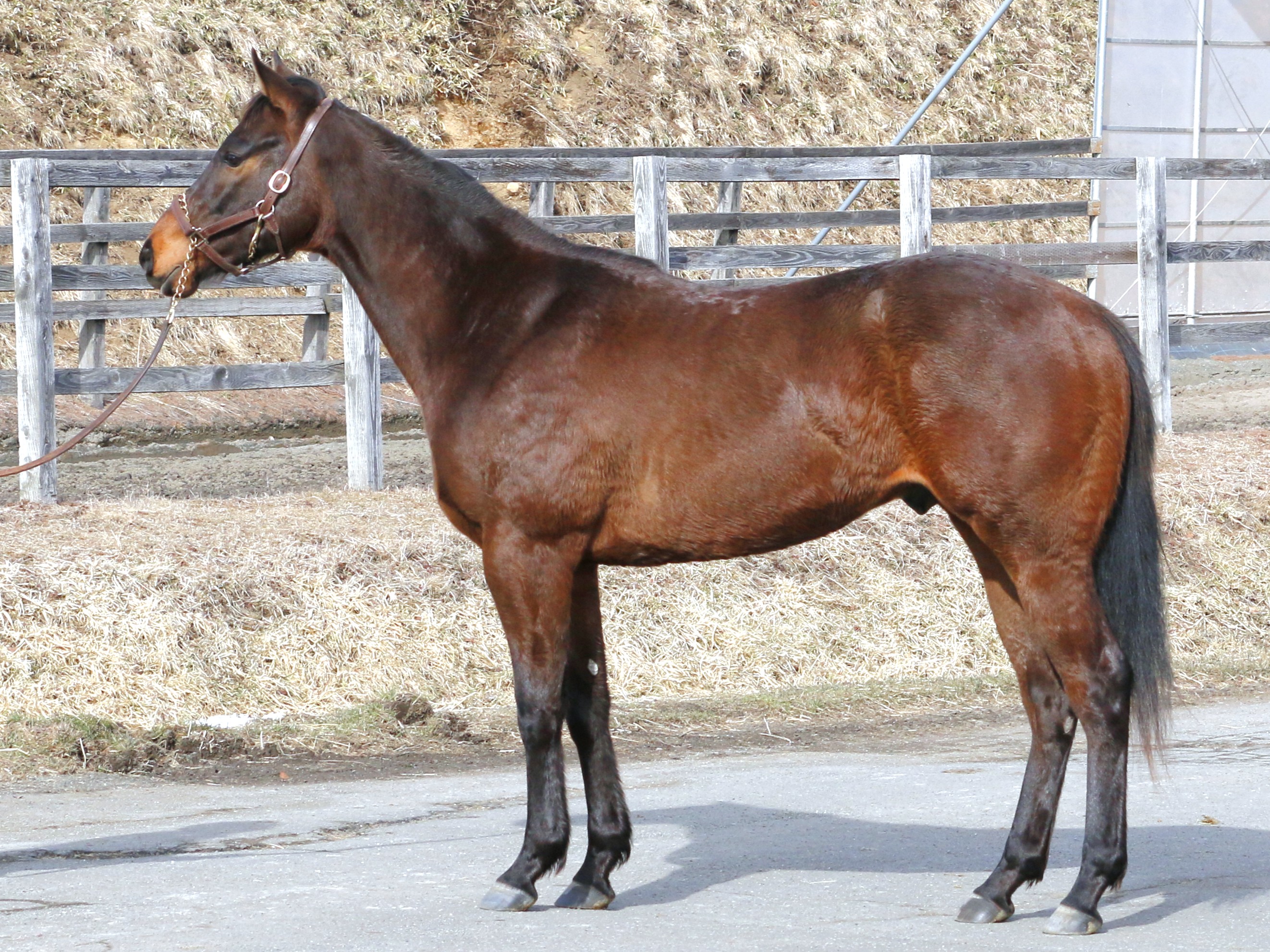 場長は「ブレーキングを終えて現在は坂路コースに出ています。併走、縦列、単走と色々なパターンで落ち着いて走ることが出来ており、ゲートも難なく通過しています。坂路コースでも修敏な動きを見せており、タイプ的に早めにデビューできそうな感があります。引き続き進めていきます」とコメントしています。