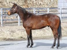 なお、Webカタログの立ち写真で左前肢の膝が腫れているように見えますが、実馬はそれほどではありません。ただし、騎乗調教を進める上では心配ない程度ですが、両前足の膝は多少の段差があります。