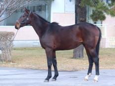 場長は「10月初旬よりブレーキングを開始しましたが、少し臆病な面があり、ドライビングロープが馬体に触れると過敏に反応してしまうため、慎重に進めてきました。現在は坂路コースで騎乗調教を行っています。ドライビングロープを引く力でもパワーを感じましたが、坂路でも軽々上がっていきます。なお、10月30日の朝、左臀部に15cmほどの裂傷を確認しました。筋肉まで達した箇所もありますが、縫合処置を済ませています。傷口がふさがるまで運動制限して回復を待ちます」とコメントしています。