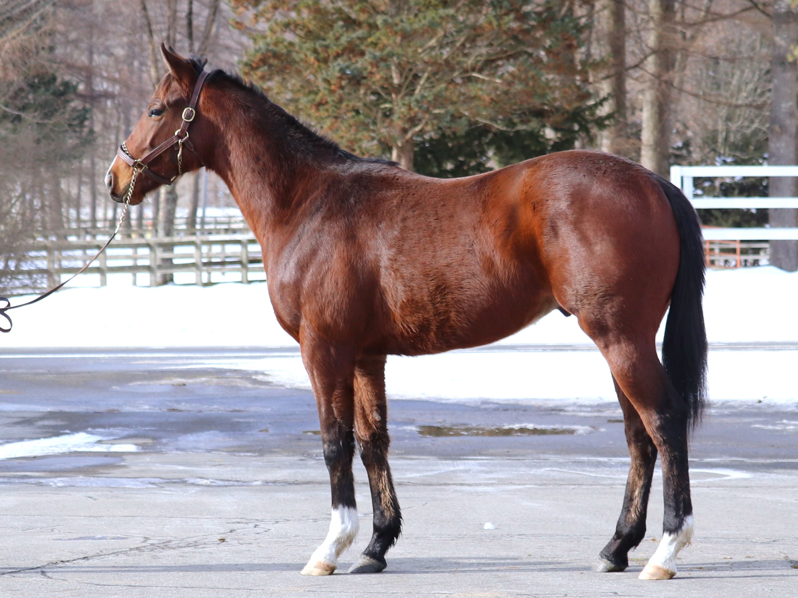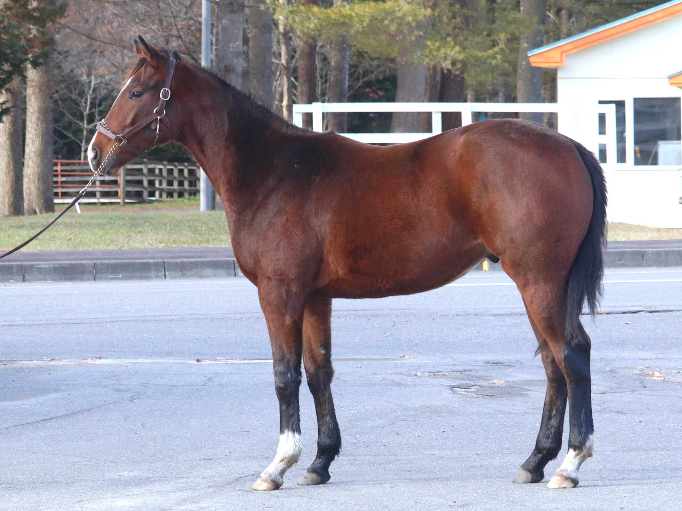 主任は「右後肢の繋の腫れはまだ残りますが、歩様には見せていません。更にブレーキングを進めてきましたが、大人しく順調です。現在は騎乗調教を進めており、近い内に坂路コースに入る予定です」とコメントしています。