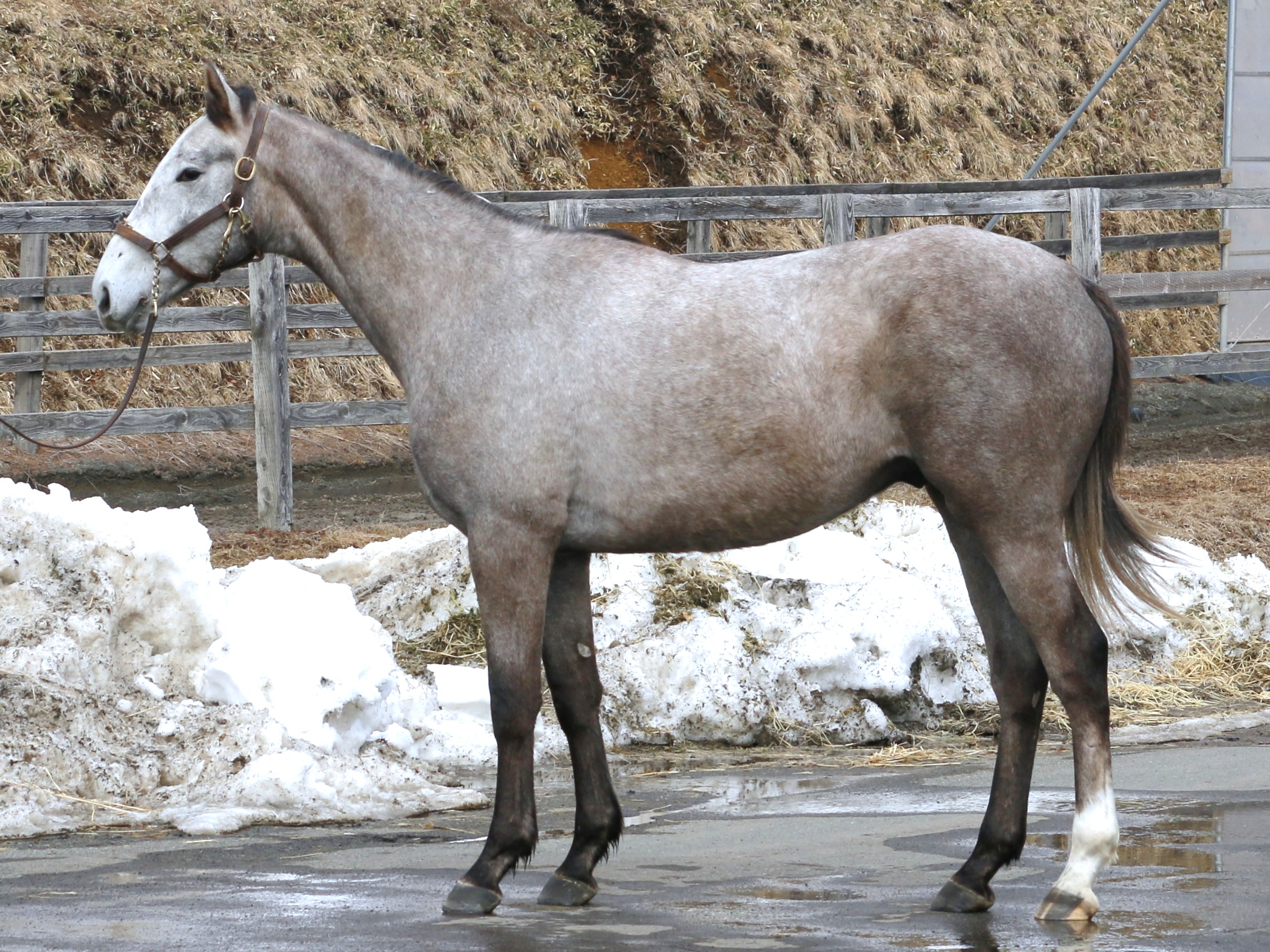 場長は「ブレーキングも順調に進み、現在は騎乗調教を行っています。求めることに対して少し抵抗する面があり、後退しながら立ち上がることもあります。それでも、近い内に坂路コースのスクーリングを予定できるまで進めています」とコメントしています。