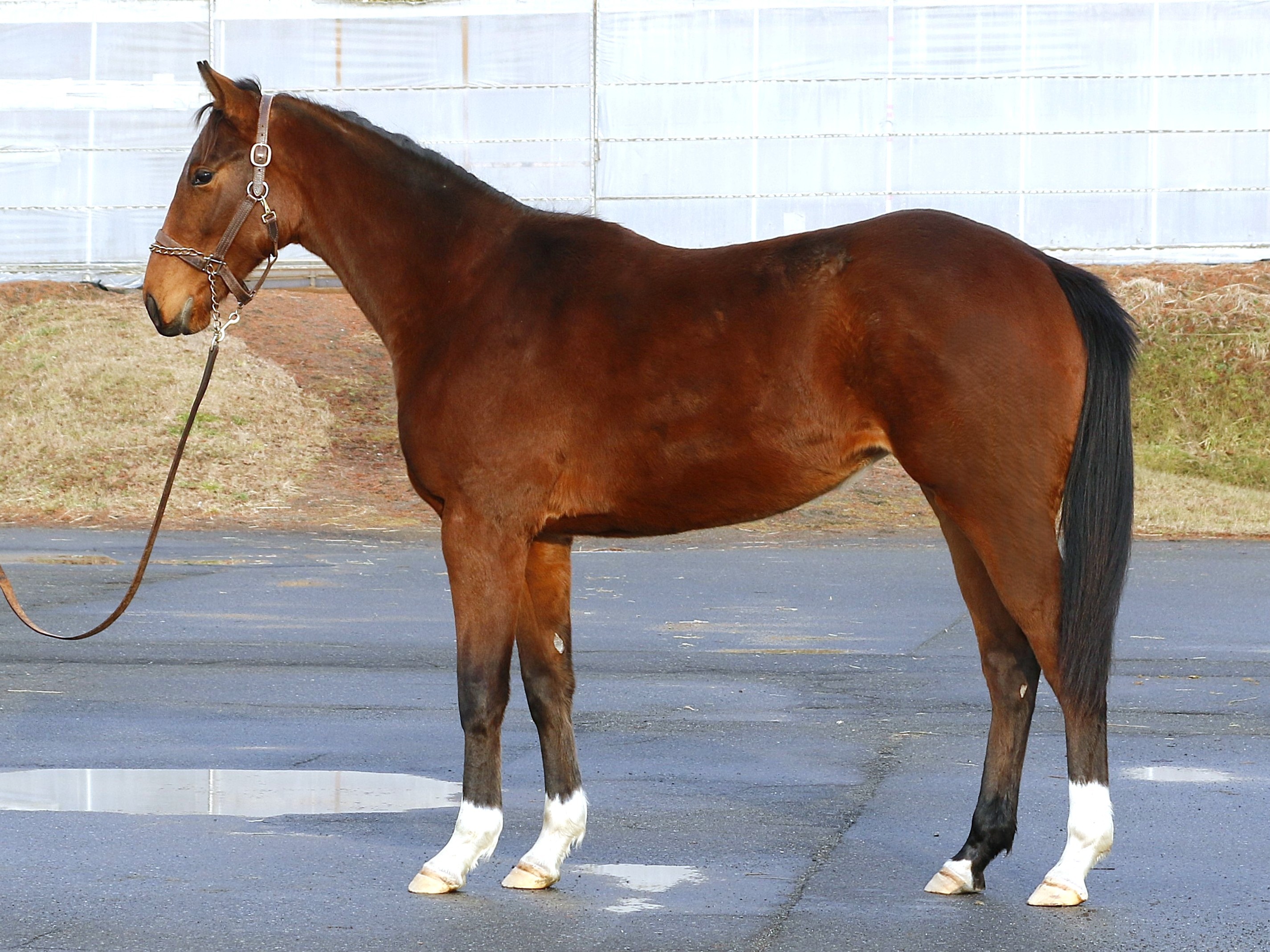 場長は「引き続き坂路コースで騎乗調教を進めています。素軽いですし、乗り心地も良くスタッフの評価が高い1頭です。今後の調教の幅を広げるため、トレッドミルの練習をはじめました。ダクまで出せるようになっています。引き続き坂路コース中心に乗り込んでいきます」とコメントしています。
