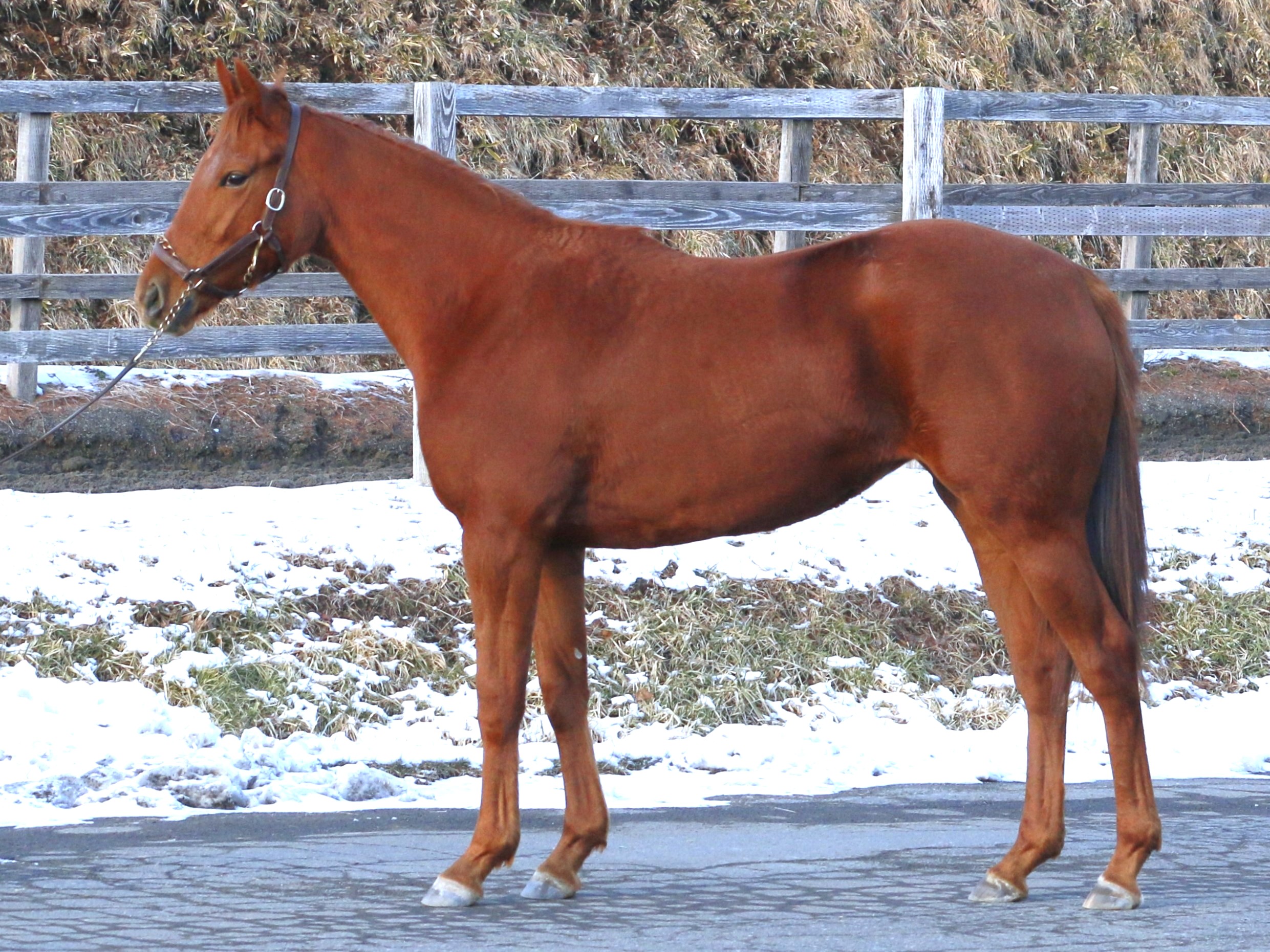 場長は「引き続き坂路コースで騎乗調教を進めています。改めてトレッドミルも併用して運動量も増やしています。馬体重が減っているのは負荷を強めてきたからでしょう。まだ力強さは他馬に劣りますが、気持ちは前向きで一生懸命走ります。順調に乗り込むことが出来ていますし、負荷をかけていくごとに力がついて馬体にも幅が出てくると思いますので、このまま進めていきます。ゲート練習も進めており、枠内の駐立と手動による開閉に慣らしている段階です」とコメントしています。