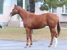 場長は「順調に進めており、現在は坂路コースでハッキング程度の騎乗調教まで進めています。ハミを理解しており、鞍上の指示通りに動くことが出来ています。大人しい反面、強めの扶助が必要ですが、一歩一歩が力強くパワータイプの印象です。引き続き進めていきます」とコメントしています。